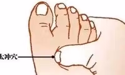 太沖穴在足大趾和次趾中間靠後的地方,與手上合谷的位置有些類似。因為它是在兩個骨頭之間,如果你用整個指頭按揉的話感覺會比較差,不妨用指頭的側面按揉,揉到有酸脹的感覺就可以了,時間長短靈活掌握,按揉力度要適可而止。一開始你可能揉一會兒就沒勁兒了,那就休息休息。