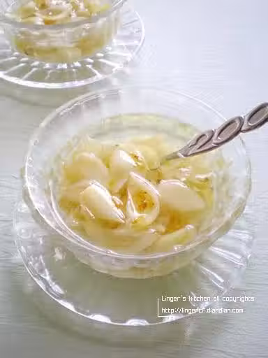 鍋中加水和冰糖,加熱至冰糖融化後放入百合,約煮15分鐘左右,百合呈透明狀熄火
