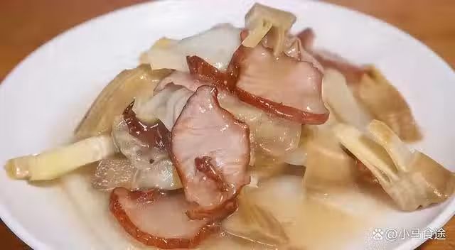 1.火腿取適量,刮洗乾淨,放入清水鍋中汆煮25分鐘左右,撈出改刀切成片。白菜處理乾淨,改刀片薄片。