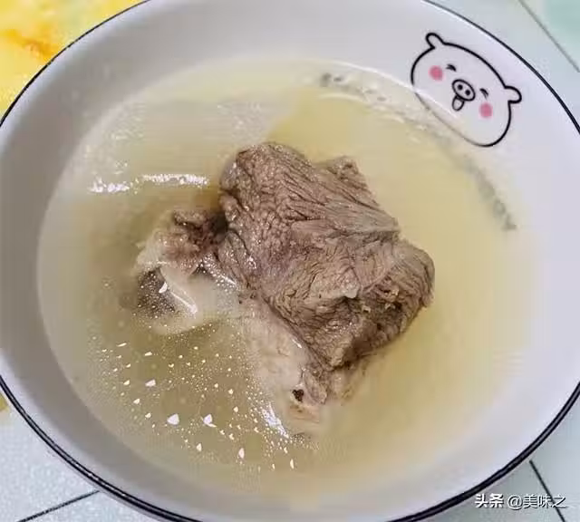 5、小火熬一個半小時+ 蘿蔔綿軟,骨頭上的肉可以輕易剝離骨頭,加點鹽調味,就可以。