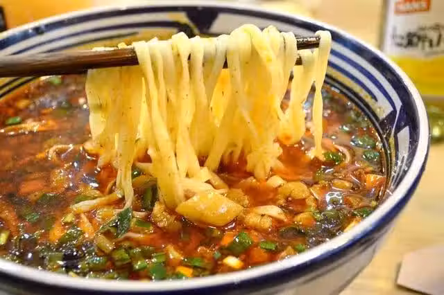 8、做麵條:把堿和少許鹽放碗中,用涼水調勻後和麵至光滑,然後用濕布蓋上餳三個小時左右最好,這樣出來的面比較有韌性,手工擀成麵條或機器壓麵條,放入開水中煮熟,撈出瀝幹水分,加上臊子鹵拌均即可。