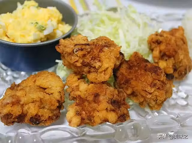 7、將雞塊放入熱油鍋中,炸3分鐘左右,直至金黃。