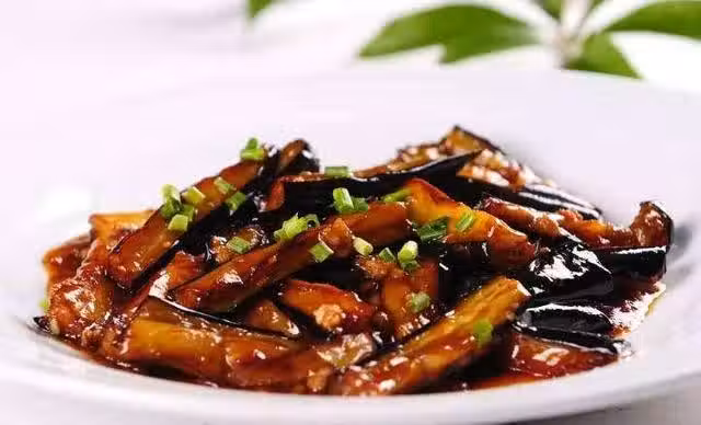 4、鍋中倒入少許油,放入姜、蒜碎爆出香味,倒入切碎的泡椒,炒出香味,倒入已炒過的茄子,翻炒幾下,倒入調味汁、翻炒待湯汁變濃稠,撒入蔥花即可出鍋。