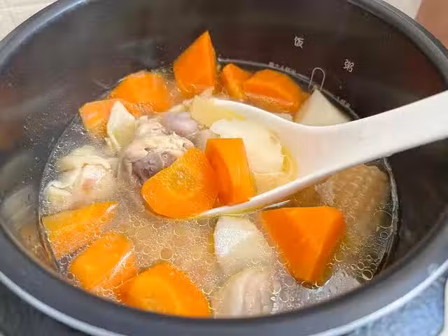 4、開啟煲湯模式即可,也可以用普通的湯鍋煮,大火煮開後,轉小火燉30分鐘,出鍋前再加點鹽調味。