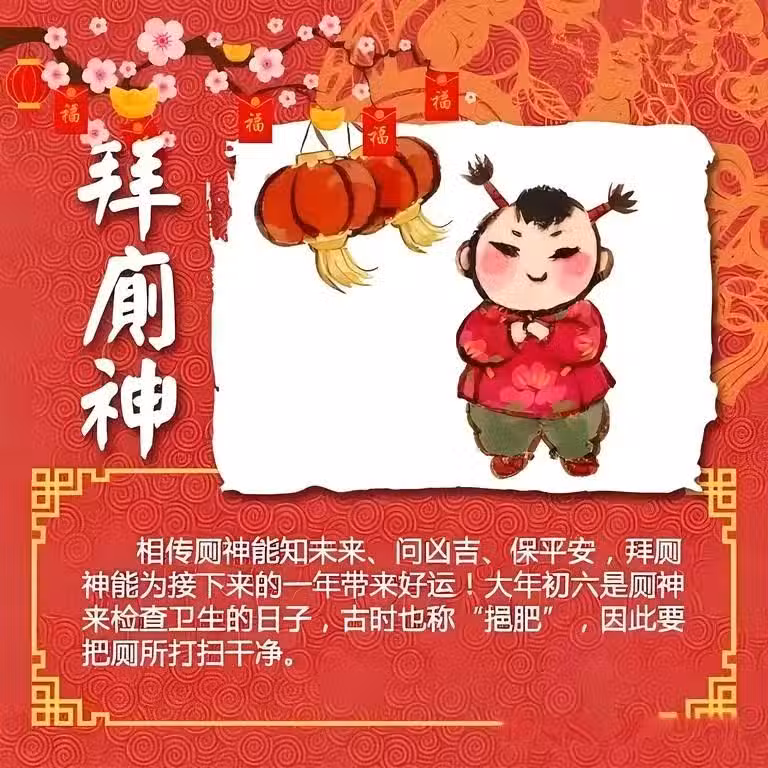 正月初六這一天,古時候民間有一項很有特色也有意思的風俗,就是祭掃「廁神」。