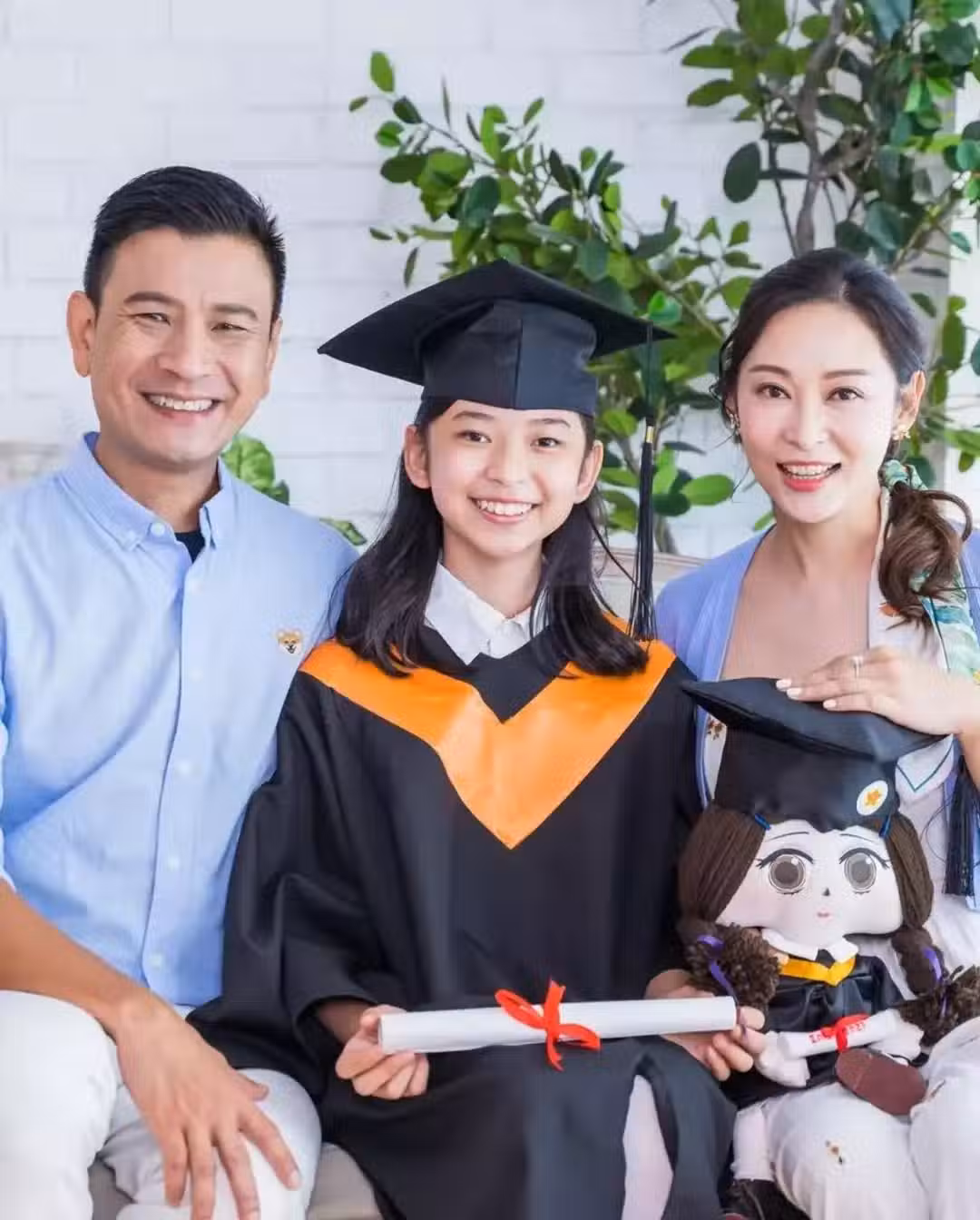 後來與兩個繼女也是經過了很長一段時間的磨合,才改口稱她為「媽咪」。小女兒出生以後,一家五口關係很好,可以說是相處融洽,其樂融融的一家人。