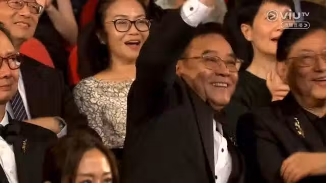 姜大衛說完令台下的李琳琳和兒子姜卓文都非常感動,同時他又多謝電影老闆古天樂以及胞弟兼監製爾冬升,爾冬升隨即興奮得不停揮手,相當搞笑。