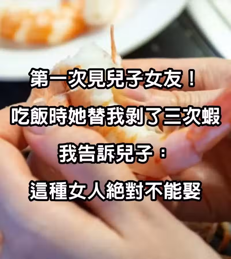 第一次見兒子女友!吃飯時「她替我剝了三次蝦」,我卻告訴兒子:「這種女人絕對不能娶!」…