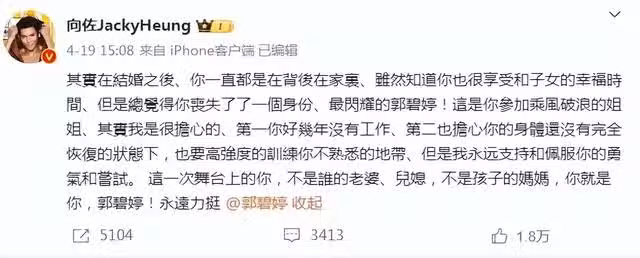 其實郭碧婷和向佐私底下相處真的蠻甜的,這次向佐高調為郭碧婷打call,而早前向佐參加演員類節目時,郭碧婷也是甜蜜力挺,夫妻二人雙向奔赴甜翻眾人。