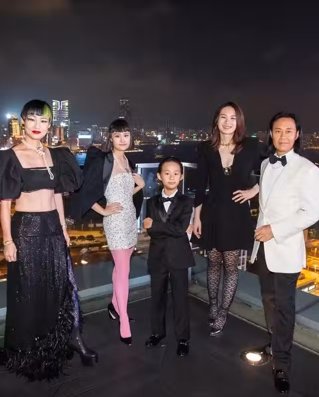 當天一家五口打扮得有型有款,或許是受周雪芳影響,兩個女兒的裝扮都十分成熟,小兒子就穿著一身西服,梳著大背後,萌感十足。