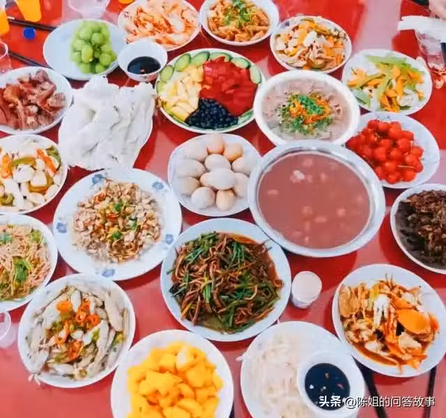 於是每個端午節,我就凌晨4點鐘就去菜場買菜,那個時候人又多,又擠,菜又貴,尤其薄餅,還要排隊去買,平時賣12塊錢一斤的薄餅,這天賣77塊錢一斤。包薄餅用的豆芽,豆腐乾都貴了,連韭菜一小把都要15塊。常常買菜什麼的都花了8.9000塊。
