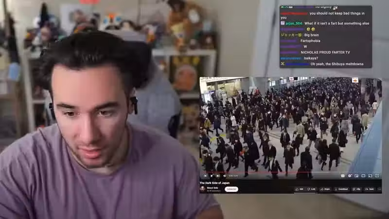 「老實說,你們覺得為什麼這麼多日本動畫都是以高中生,甚至是小學生為主角?我看的動畫作品主角常常都是小孩子,或是青少年啊!你們覺得為什麼?這就是為什麼!因為當你在日本,從高中畢業以後,這就是你他媽要進入的世界!日本人腦中的快樂回憶,都只停留在他們還小,或是青少年的階段,所以他們只能基於那個階段的回憶去創作。不然你他媽的告訴我,要怎麼創作一個成年日本人的故事?整個動畫就只是看他窩在辦公室隔間,每天工作14個小時,誰會想看這種垃圾故事啊?」