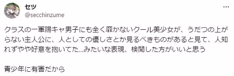 這位暱稱「セツ」的日本X網友,最近發文抨擊「帥哥美女看上不起眼的我」這類劇情應該被禁一禁,因為對年輕人充滿害處。這種說法隨即引發議論了!