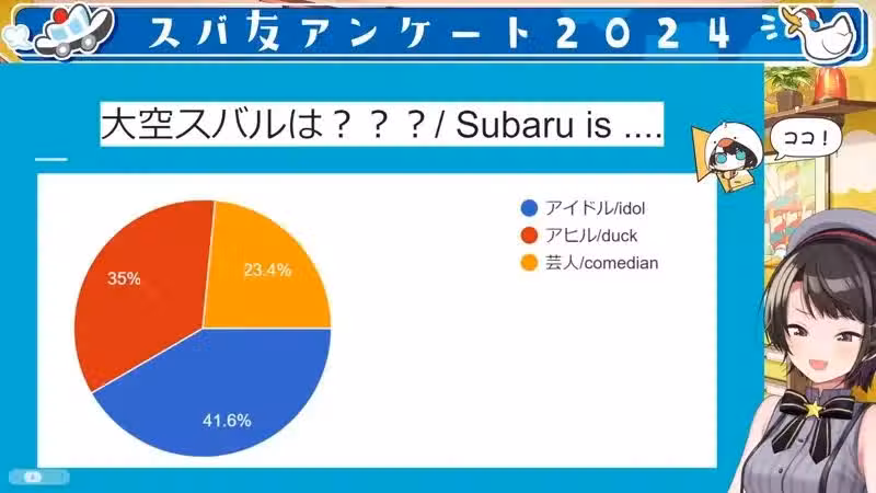 接著的問題是「覺得大空昴是?」關於這題,鴨友們的想法幾乎可以說是漂亮的分成三等份,三足鼎立的混沌狀態讓鴨鴨笑到不行。