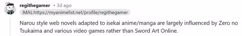 「我知道很多人討厭《刀劍神域》,但是真的要多虧這部作品,才有時下這麼多以異世界或是電玩遊戲為主題的動畫問世啊。」