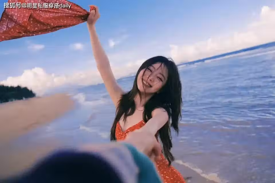 而譚松韻自帶的活潑氣質和治癒系笑容更是加分項!當她手拿著絲巾在海邊隨風起舞時,美的像是大海的女兒!藍天大海,加入美女的一抹紅色身影!美輪美奐!