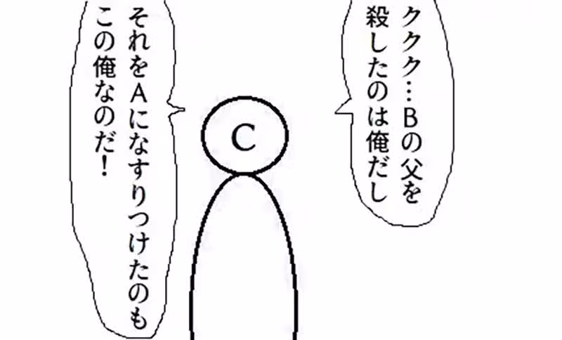如同上圖所示,在某些漫畫當中,一開始的劇情可能會聚焦在A與B的善惡對抗。但是到了故事的中後期,卻突然冒出一個C,被描繪成一切的罪魁禍首、萬惡之源,吸走了劇中所有的仇恨值。