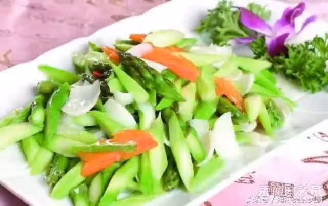 原料:新鮮蘆筍、百合、南瓜、紅尖椒(不喜吃辣的可不放)