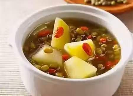材料:綠豆200公克、木瓜50公克、枸杞20公克