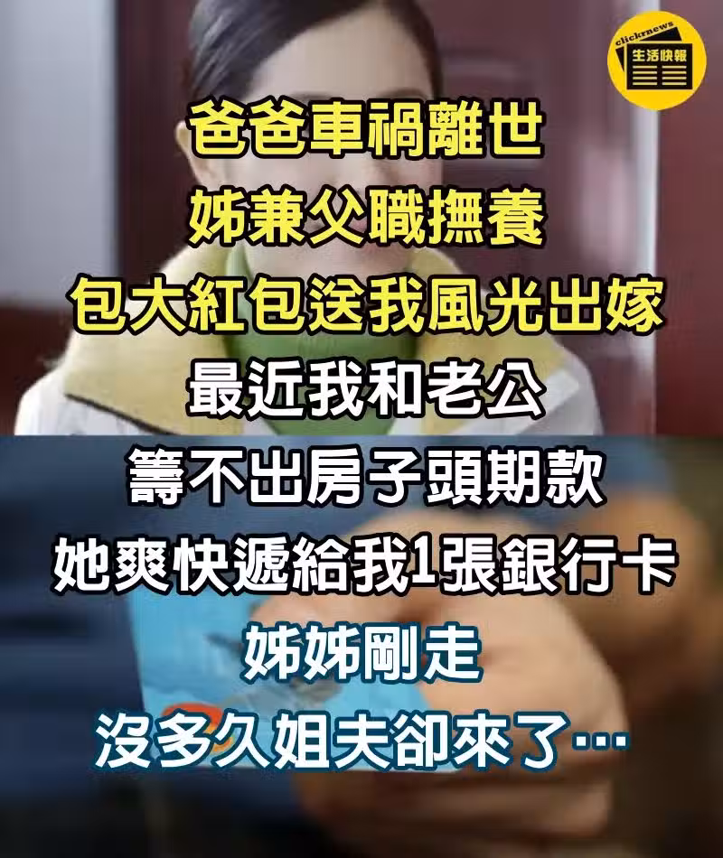姊代父職養大!送我風光出嫁「買房遞1張銀行卡」 姐夫回家一趟「我直接拒絕了」