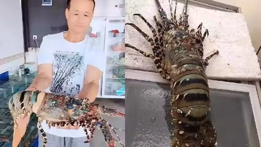 漁民捕到一頭六公斤重的「七彩龍蝦」,身體加觸鬚長達113cm,1天後竟賣出600000