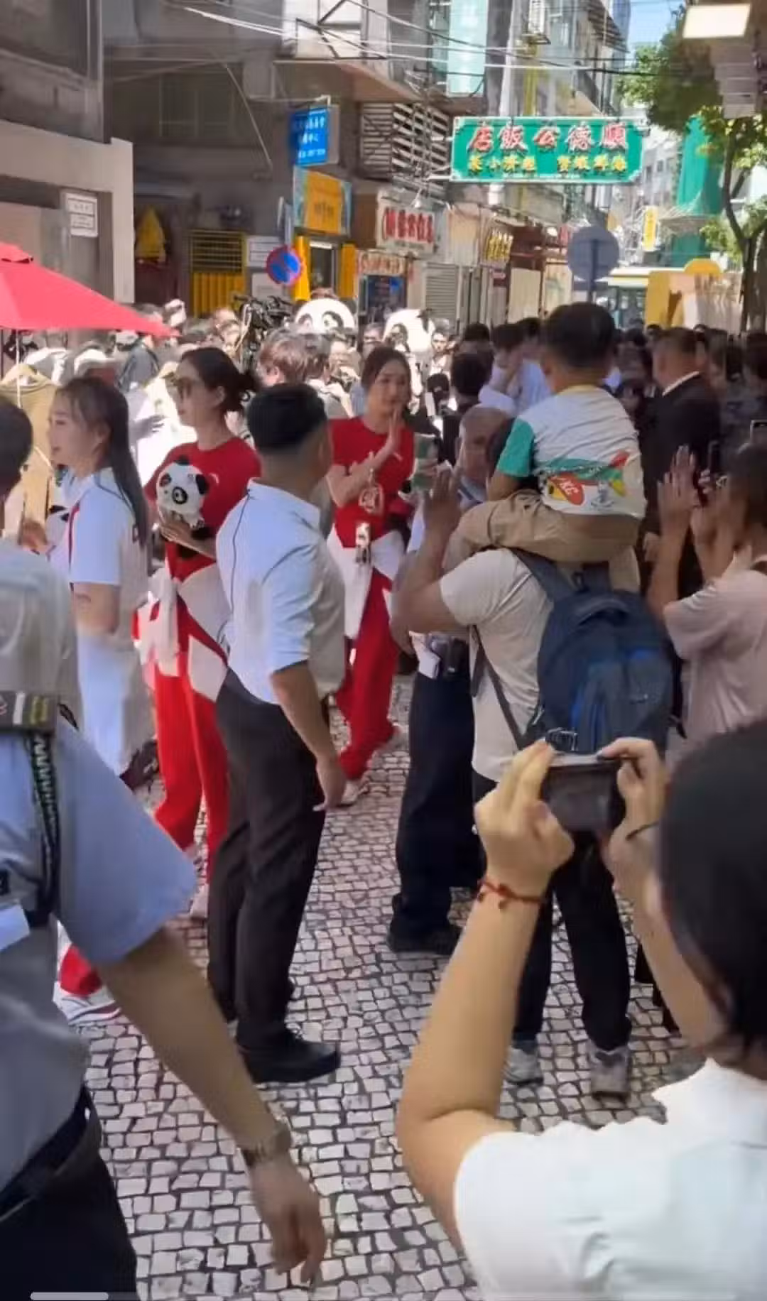 比如奧運健兒們在澳門大會堂出行的時候,現場的安保人員和警方就手拉著手圍起了人牆,把運動員們包圍起來保護,雖然看起來場面有點誇張,但看到人牆外粉絲們的數量和熱情也能理解了。