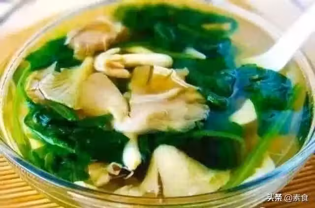 2、鍋中加足夠分量的清水,待水滾後,加入蘑菇、菠菜煮熟即可,最後用鹽、蘑菇精調味。