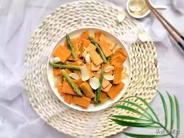 南瓜500克,蘆筍5根,新鮮百合1個,生薑、玉米油、鹽適量