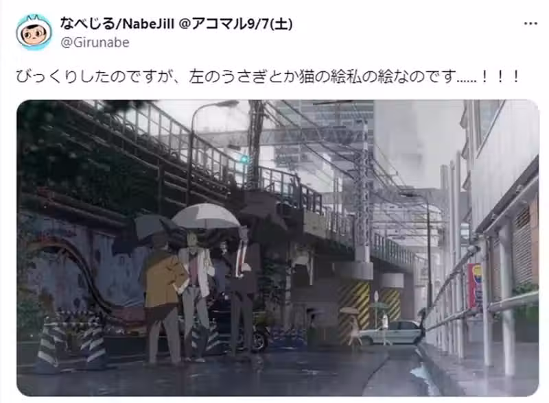 2019年7月,新海誠導演的動畫電影《天氣之子》在日本上映之後,隨即有位名叫なべじる(NabeJill)的日本網友,發現了劇中出現的一面彩繪牆,就是自己以前受託繪製的作品!
