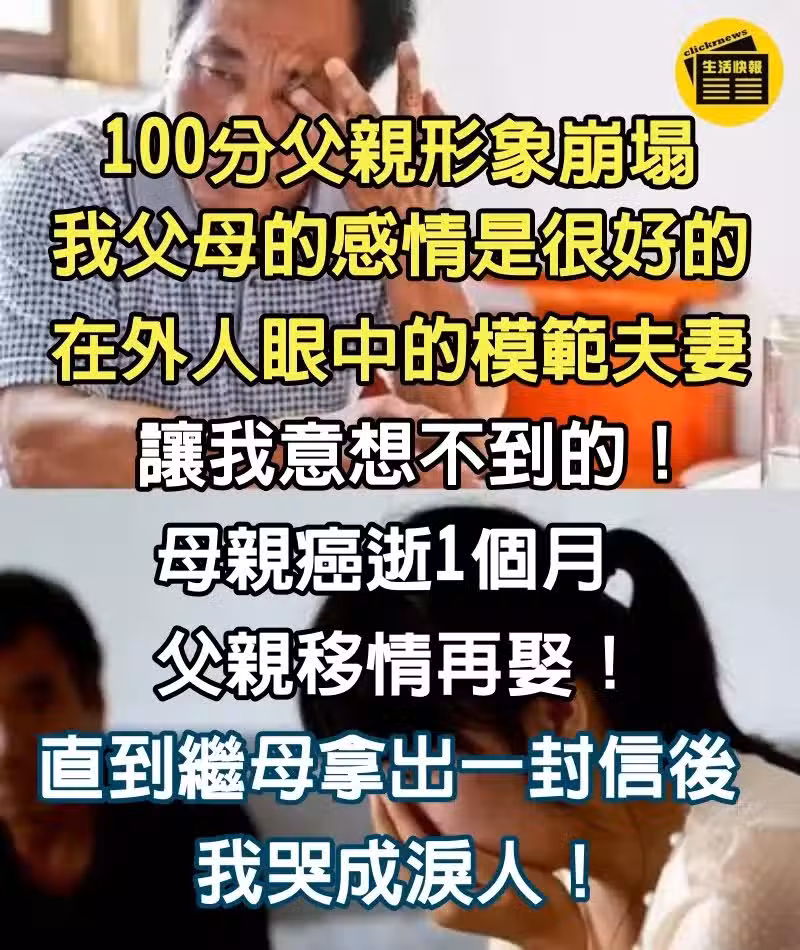 100分父親形象崩塌!「 母親癌逝1個月」父親移情再娶 繼母拿出「一封信」後我哭成淚人