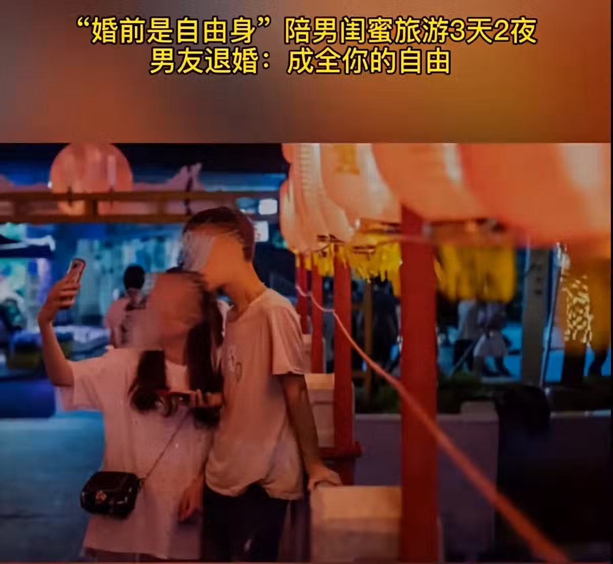 女友解釋,那位男性是自己的髮小,也是自己的男閨蜜,兩人關係一直不錯,平日裡以哥們相稱,就在結婚前夕,男閨蜜向她表示自己失戀,聽聞男閨蜜這麼一說,自己丟下手頭的工作,陪伴男閨蜜外出旅遊散心,希望對方能走出失戀的陰影,自己雖然與其共處三天兩夜,但可以發誓絕對沒有發生什麼背叛感情的事,自己完全是清白之身,僅僅只是出於對男閨蜜的關心而已。