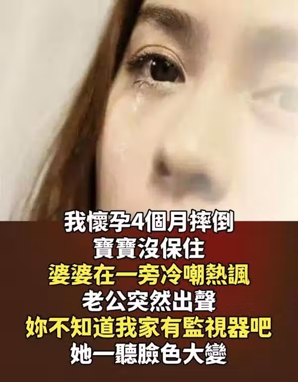 我懷孕4個月摔倒... 寶寶沒保住「婆婆在一旁冷嘲熱諷」😢 老公突然出聲「你不知道我家有監視器吧」她一聽臉色大變!