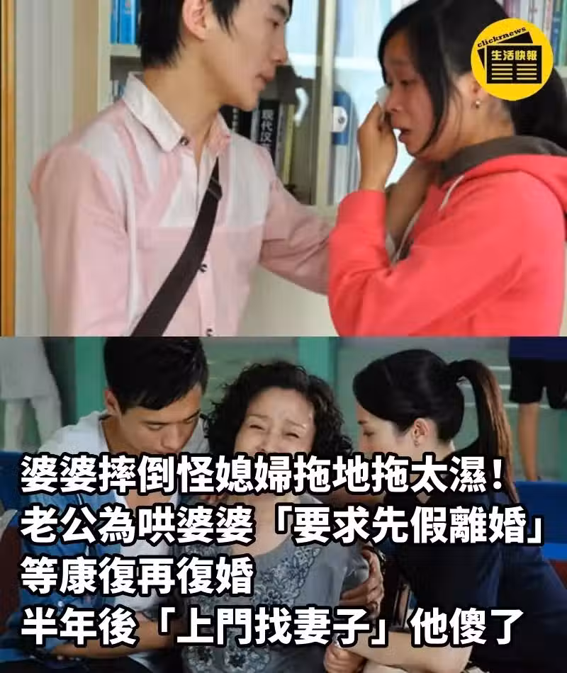 婆婆摔倒怪媳婦拖地拖太濕! 老公為哄婆婆「要求先假離婚」等康復再復婚,半年後「上門找妻子」他傻了