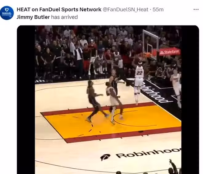 第二節巴特勒終於完成了他本場比賽的第一個運動戰,還是一個快攻的扣籃,這也是他上半場唯一的運動戰進球。