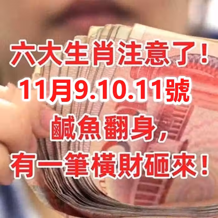 11月9.10.11號鹹魚翻身,有一筆橫財砸來的生肖快來接!