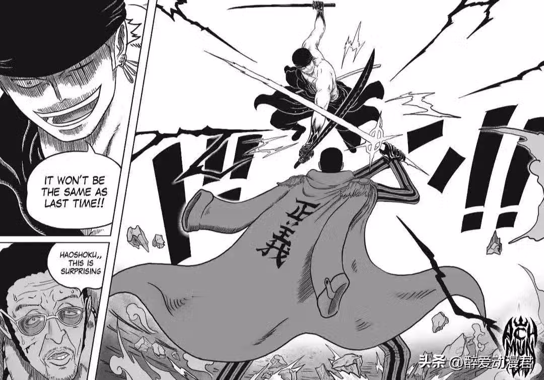 索隆在之前的彈頭島上表現不錯,擊敗了CP0的老大路奇,現在打一個海軍大將也是很合理的事情了!
