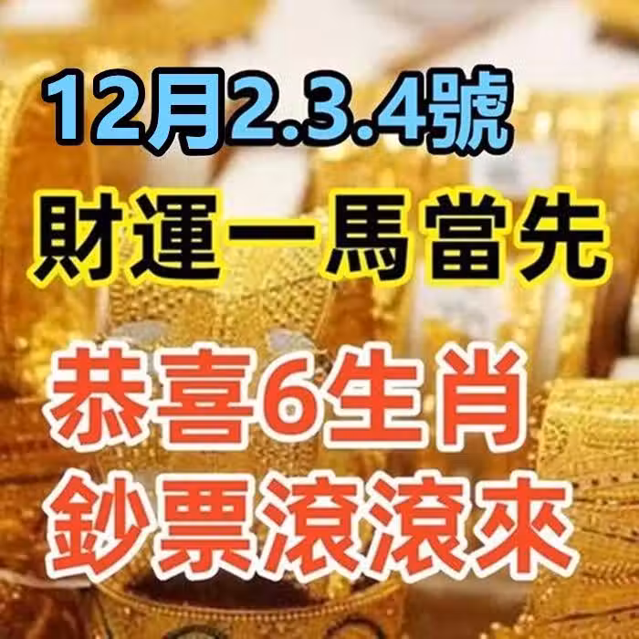 12月2.3.4號財運一馬當先,恭喜6生肖鈔票滾滾來!