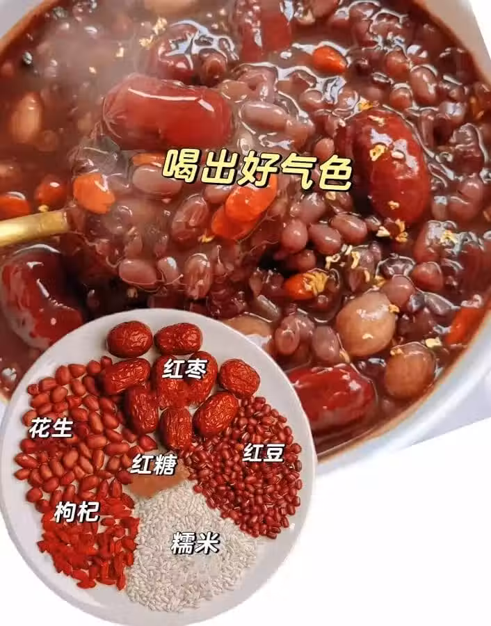 3️⃣煮至軟糯粘稠,放入枸杞和紅糖