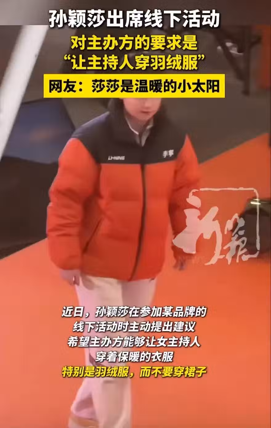 孫穎莎的這一暖心行為,不僅贏得了廣泛的讚譽,更為娛樂圈和體育界樹立了新的標杆。更有網友幽默地將孫穎莎與主持人的羽絨服搭配稱為「冬日裡的溫暖CP」,在網絡上掀起了一股不小的熱潮。
