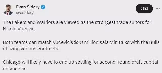 是的,勇士湖人正在為了武切維奇搶得你死我活。