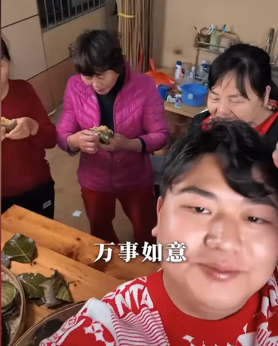 做好了艾餅,大家吃得很開心,並且祝福大家新年快樂。全紅嬋媽媽心情非常愉快,她在視頻末尾又唱起了歌。敢於大聲唱歌,全紅嬋這是繼承了媽媽的精神。