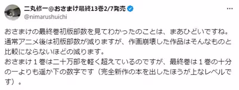 《動畫化作畫崩壞的下場》原作輕小說發行量跌破10分之1 作家呼籲將作品託付給值得信賴的人