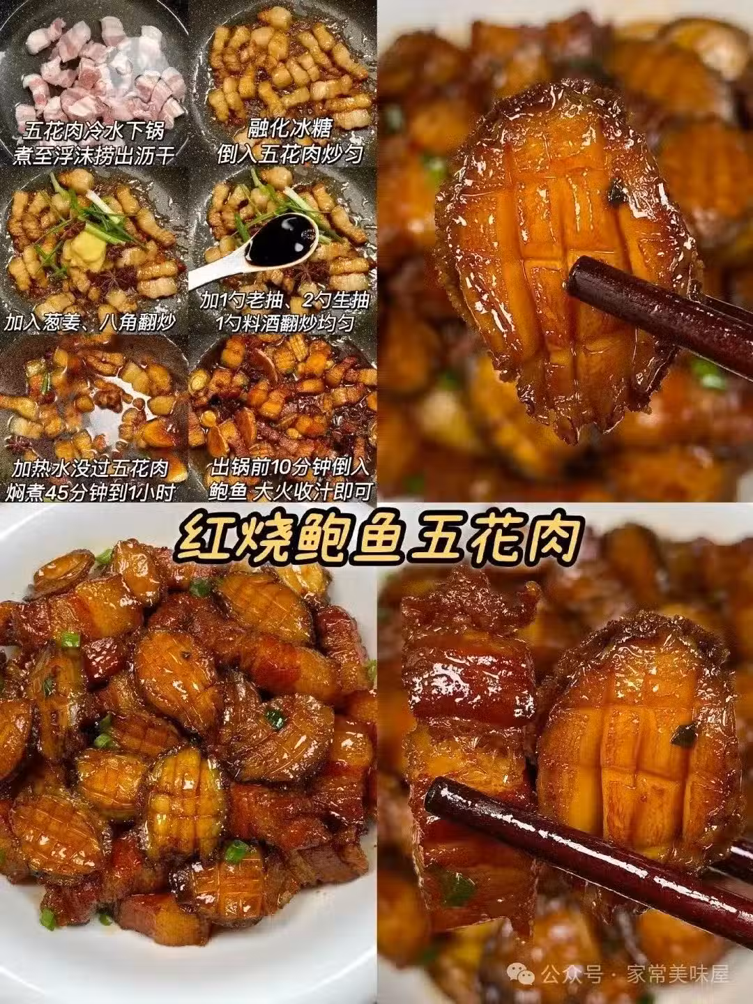 紅燒鮑魚五花肉,味道豐富,鮑魚鮮美,五花肉香滑,湯汁濃郁。