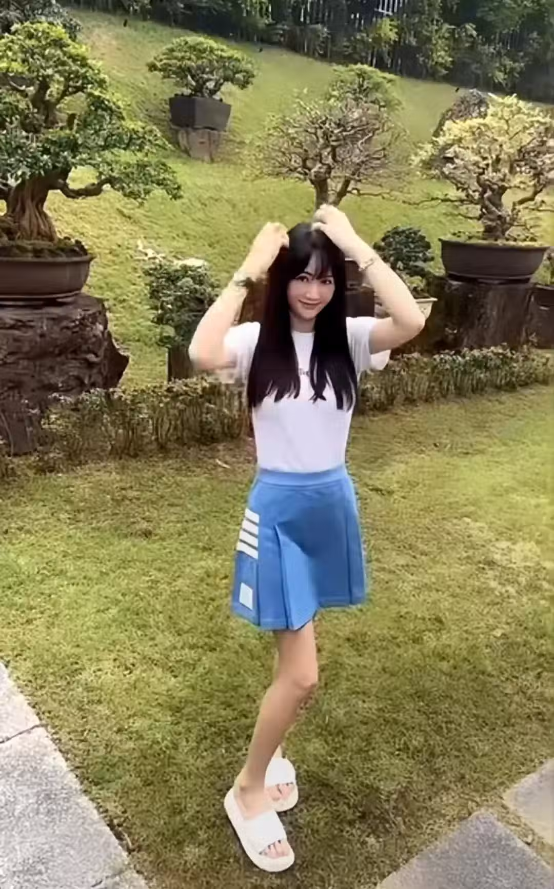 艾倫也真不愧馬來西亞富三代的身份,陳喬恩穿著拖鞋,在自家莊園散步拍照,好不愜意。背景都是一些園林專用的樹景盆栽,每個估計都價值不菲,而且莊園面積還非常大。