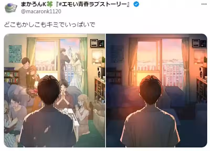 根據原作者的解釋,這套圖中的男性應該是跟女朋友分開之後,看著曾經跟女朋友一起生活的房間,因而觸景傷情。