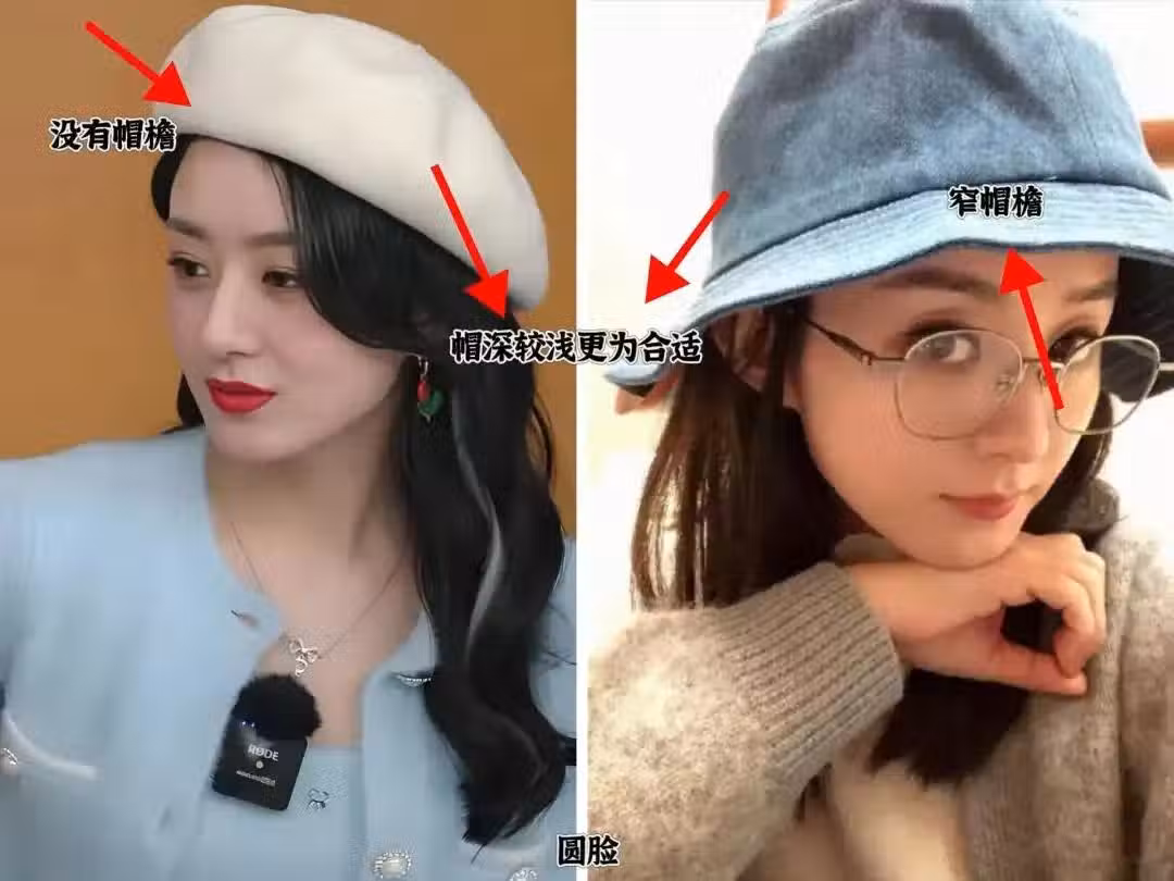 但還有一點也需要注意,圓臉不適合重心向下的帽子,很容易讓縮小五官問題,看著不夠大氣,有些時候用力過猛,會有種「扮嫩」的嫌疑。