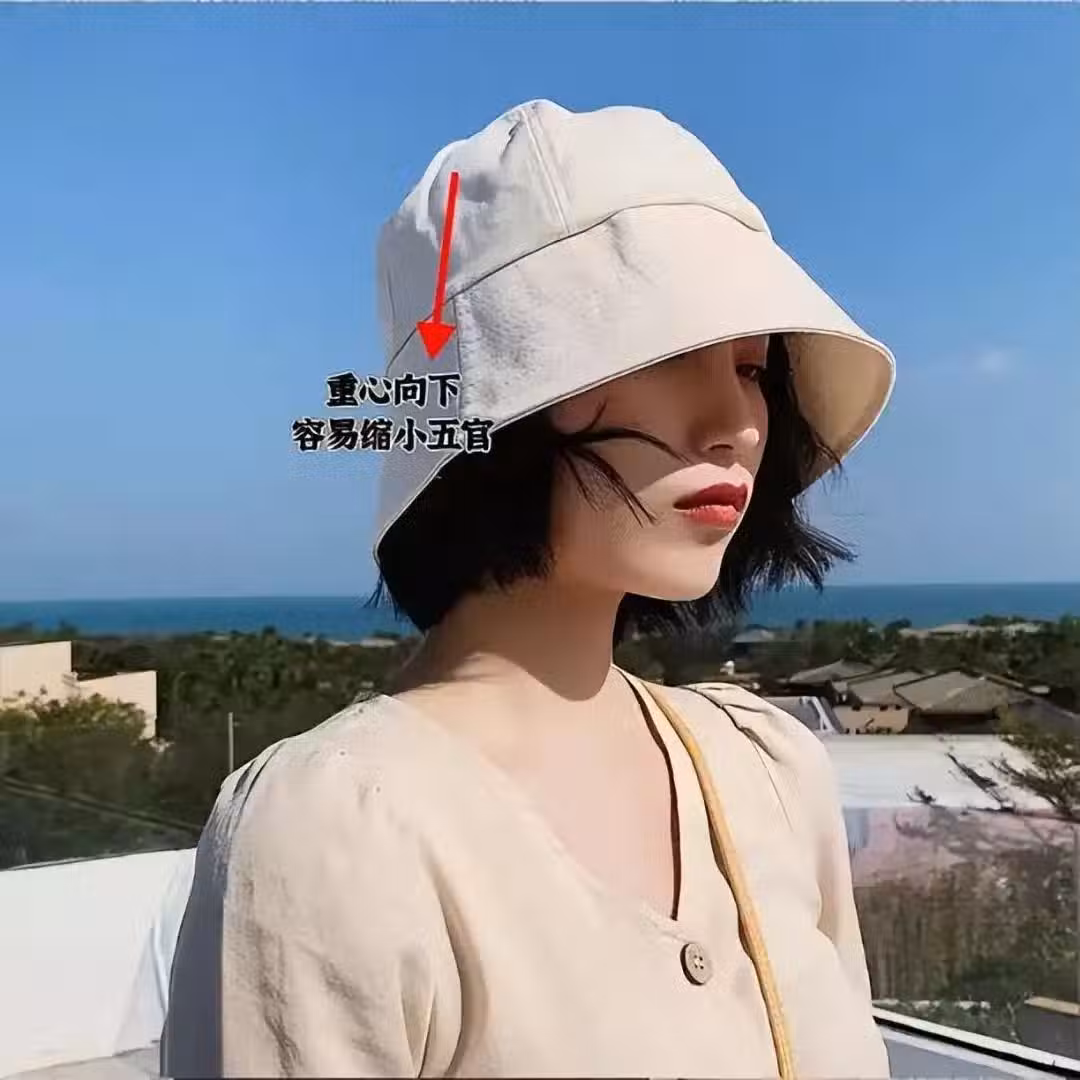 那麼,方臉就很適合深筒的帽子,且還需要寬帽檐的,蓋下去的弧度剛好從眉毛至耳朵下方,形成一個橢圓的形狀,這樣就可以輕鬆從方臉變成鵝蛋臉了。 而寬帽檐的設計,剛好弱化臉型的明朗度了,同時面部在這兩者的映襯下,瞬間就縮小了,精緻度也就有了。