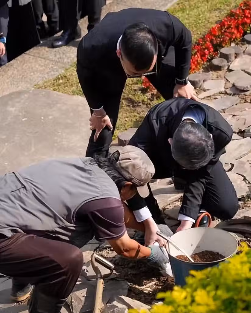 在骨灰盒安葬當日,瓊瑤的兒子與兒媳婦送別。