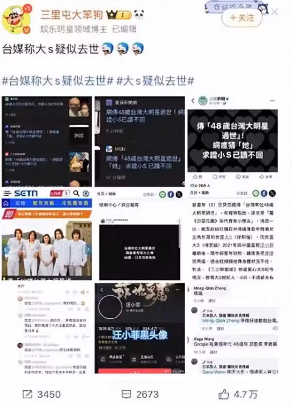 大S的突然離世,不僅讓無數粉絲和網友感到難以接受,也讓整個演藝圈為之震驚。