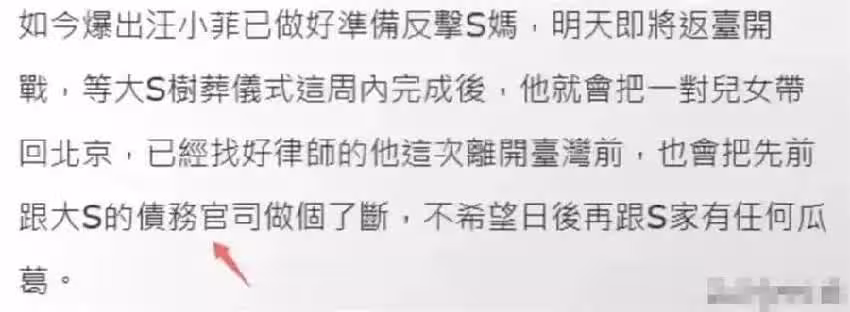 這無疑給S家一個下馬威,也休想再抓住汪小菲把柄,不是說誰嚷嚷的聲音大誰有理,一切由法律判定。
